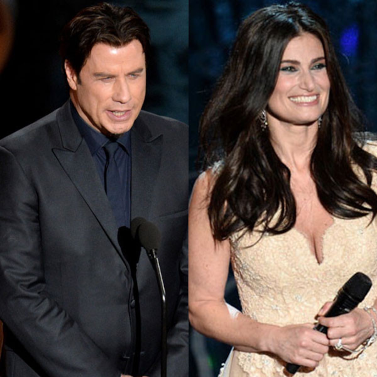John Travolta Mispronounces Idina Menzel S Name At The Oscars John Travolta Celebrities Funny Idina Menzel